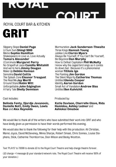 Back in 2015 The Royal Court Theatre in London put out a call for short pieces inspired by the themes of resistance, revolution and defiance. A selection of those tiny plays, including mine, were performed as rehearsed readings.
