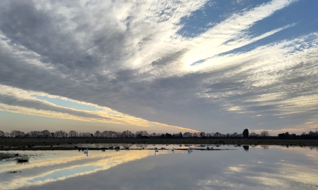 As the light slowly starts to fade at the end of my visit, I watch a group of whooper swans flying over Lady Fen, keeping their graceful long necks in sight through my binoculars as they head towards the Ouse Washes. Their migration brings them from Iceland via a long sea crossing to the feeding grounds of East Anglia. The patterns on their yellow and black beaks are a unique fingerprint, allowing scientists to monitor each individual. Humans tend to place ourselves at the centre of everything but I couldn’t help but wonder, what is this wetland worth to this group of swans? What is it worth to the black-tailed godwit chicks released on to the fen?