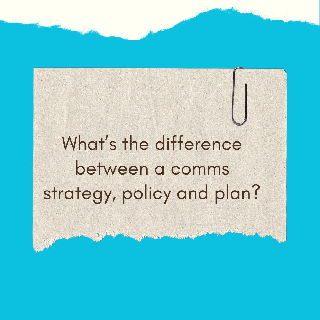 The terms strategy, policy and plan can often feel like they are used interchangeably, but what do they actually refer to, and which do you need? This whole area can feel particularly daunting to small organisations, conjuring up images of lots of paperwork and not getting anywhere fast with the practical business of actually communicating with people. This post will unpack what they are, when and why you need them, and why they are worth investing time over.