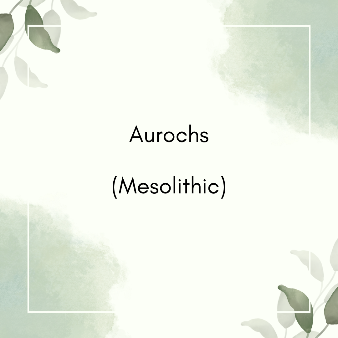 Aurochs were a type of wild cattle which roamed Europe, Asia and North Africa. The earliest fossils date to around 700,000 years ago, they were extinct in Britain by the time of the Late Bronze Age but the last known animal died in 1627 in Poland. They roamed and grazed in small herds across grasslands and open woodland. Compared to modern cattle they were huge – the males could be up to two metres tall, weighing a tonne, and with curved horns up to one metre long. Archaeologists have been able to form a picture of them using bones, cave paintings and historical descriptions. Domestication of these animals is thought to have begun around 10,000 years ago, with people making use of their meat, hides, milk and bones. Over time they were bred to be calm and obedient.
